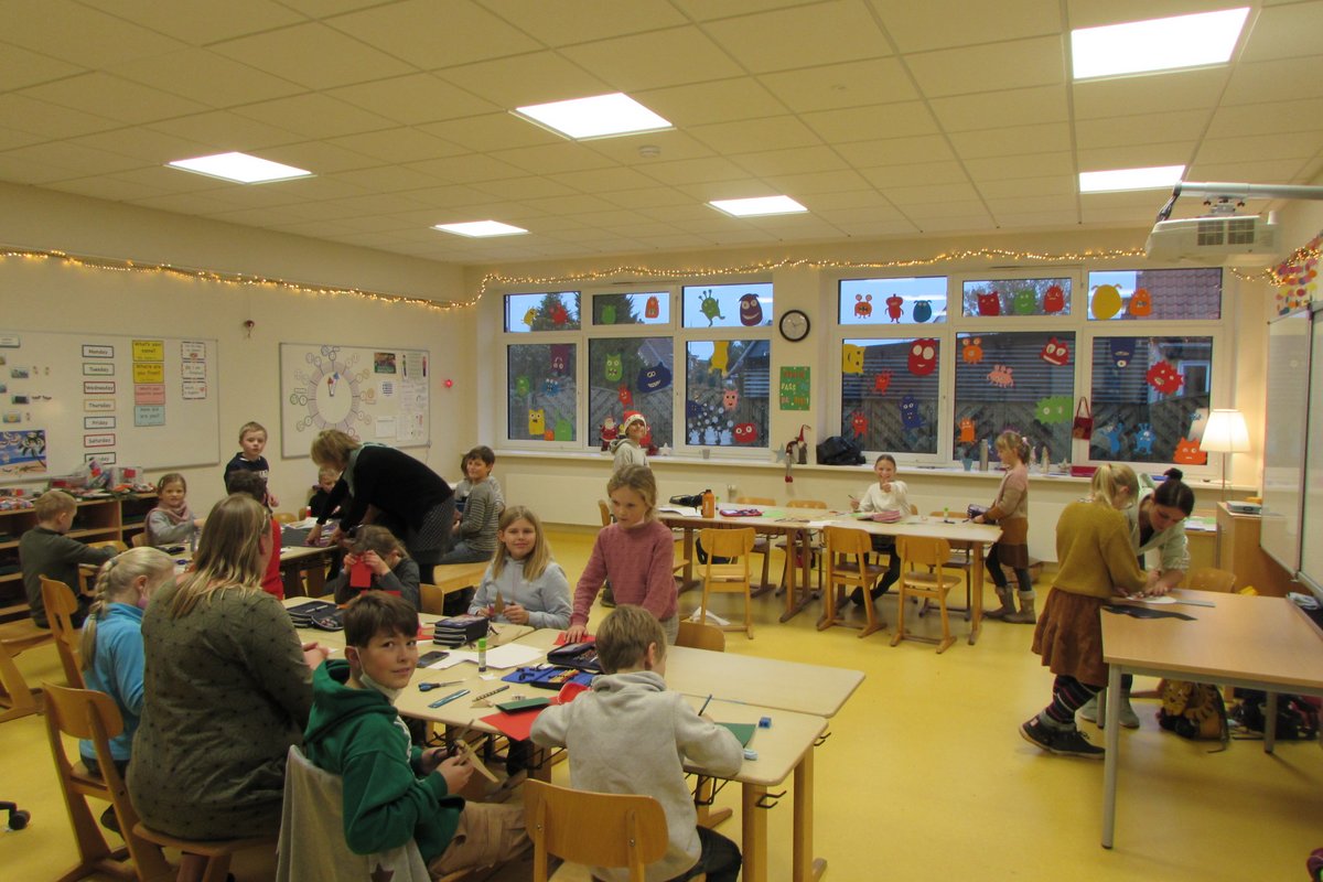 läuteten mit einem gemeinsamen Adventssingen den Basteltag ein. Nicht nur weihnachtliche Klänge erfüllten unsere Schule, sondern auch ein köstlicher Duft. Denn natürlich darf an so einem Tag die Verpflegung nicht zu kurz kommen! Für alle Bastelnden gab es frische Waffeln und für die helfenden Hände der Erwachsenen dazu einen heißen Kaffee. Vielen Dank an alle Eltern und Großeltern, die mitgeholfen haben, die Schule zu dekorieren und uns mit diesem schönen Tag auf Weihnachten einzustimmen.