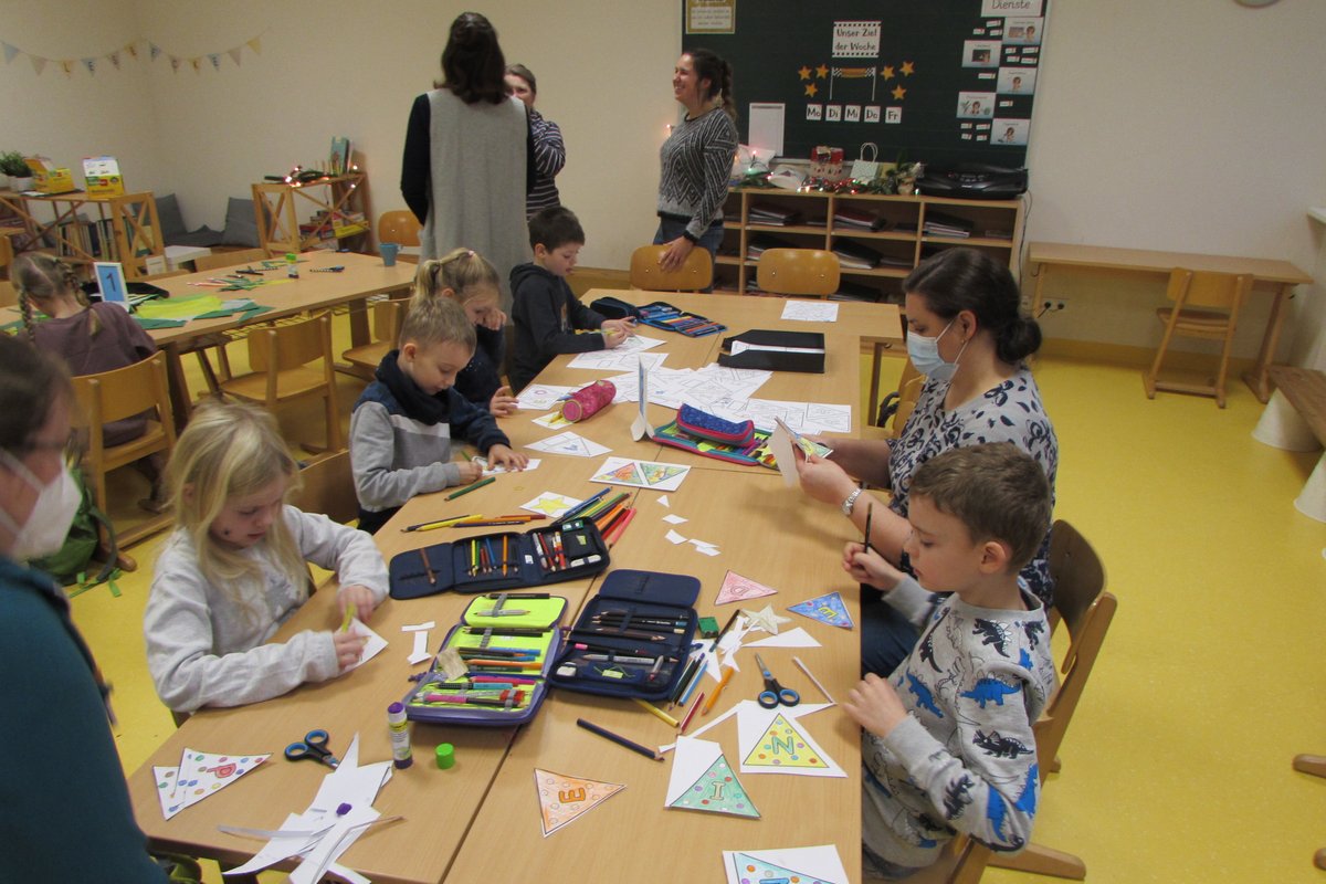 Unzählige Hände waren an unserem jährlichen Adventsbasteltag fleißig und haben Weihnachtsschmuck unterschiedlichster Art erstellt. Ob Sterne, Engel oder Tannenbäume - es gab viele verschiedene Kreationen zu bestaunen. Bevor es losging, versammelten sich alle Kinder in der Aula und