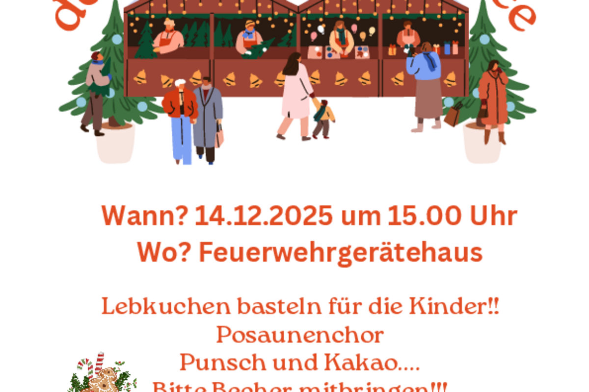 Am 3. Advent findet die alljährliche Adventsfeier der Gemeinde am Feuerwehrgerätehaus statt. Ab 15 Uhr gibt es Punsch, Kakao, Grillwurst und, und, und … der…