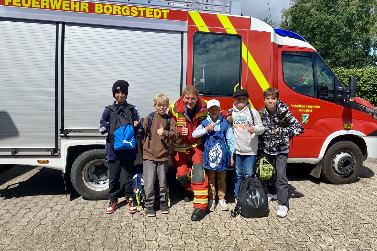 Wir bedanken uns ganz herzlich bei der Borgstedter Feuerwehr, die sich die Zeit genommen, geduldig alle Fragen beantwortet und den Kindern in ganz kleinen Gruppen diesen besonderen Tag ermöglicht hat!