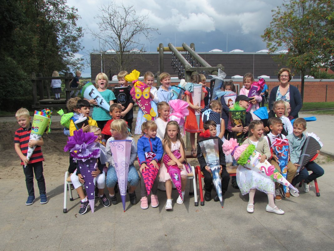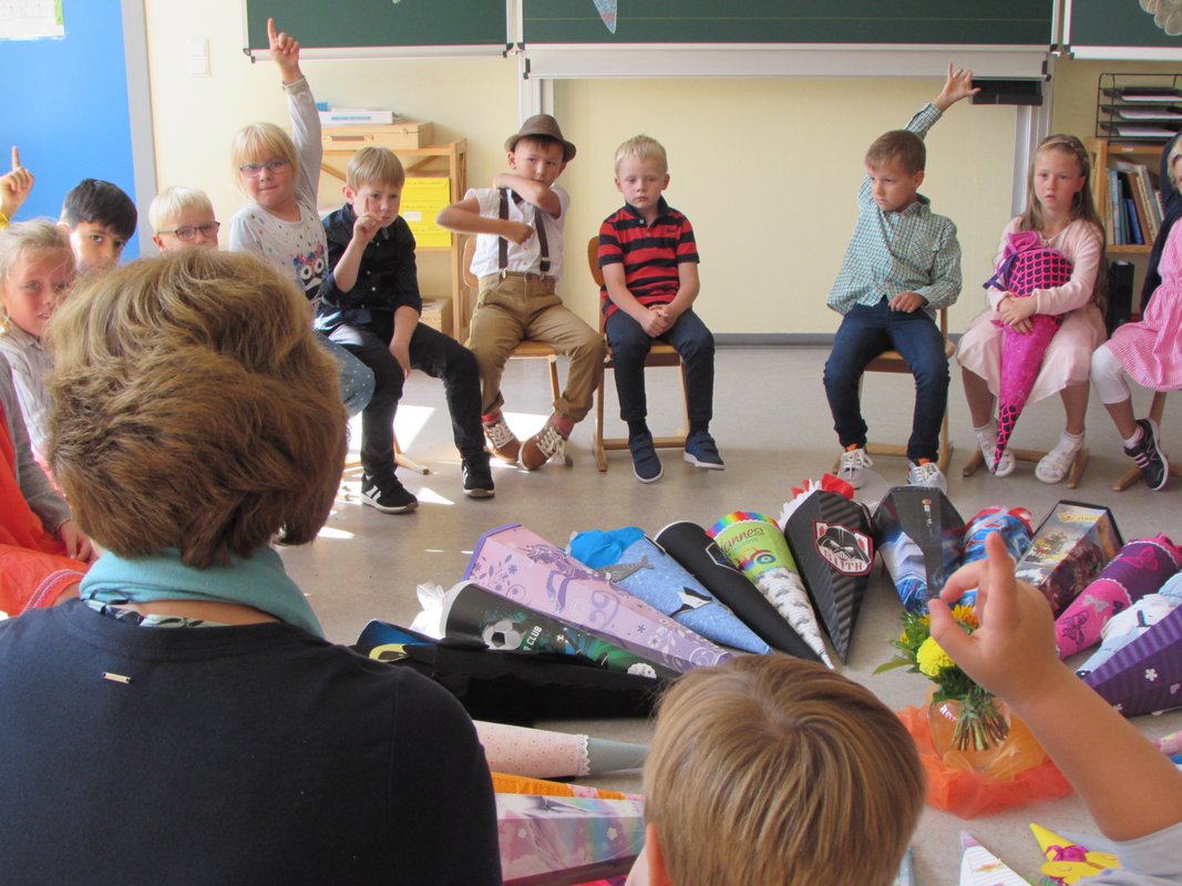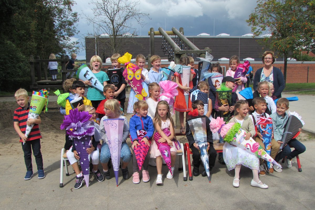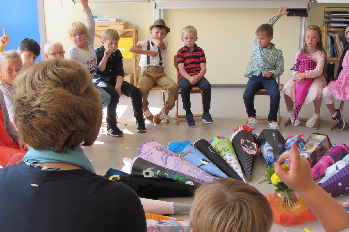 Nach sechs Wochen Ruhe ist es endlich wieder wuselig in unserer Schule. Wir freuen uns über 28 neue Erstklässler, die unsere Schule von nun an mit Leben füllen. Der aufregende Einschulungstag begann mit einem Gottesdienst und jeder Menge Schuhe in Sehestedt. Danach ging es in die Schule. In der Aula wartete ein buntes Willkommensprogramm mit Musikdarbietungen, einem Theaterstück und jeder Menge Löwengebrüll. Ein Besuch und ein Kennenlernen im Klassenraum, schnell noch ein Klassenfoto und schwups war der erste Schultag auch schon vorbei. Nun konnten endlich die Schultüten ausgepackt werden.