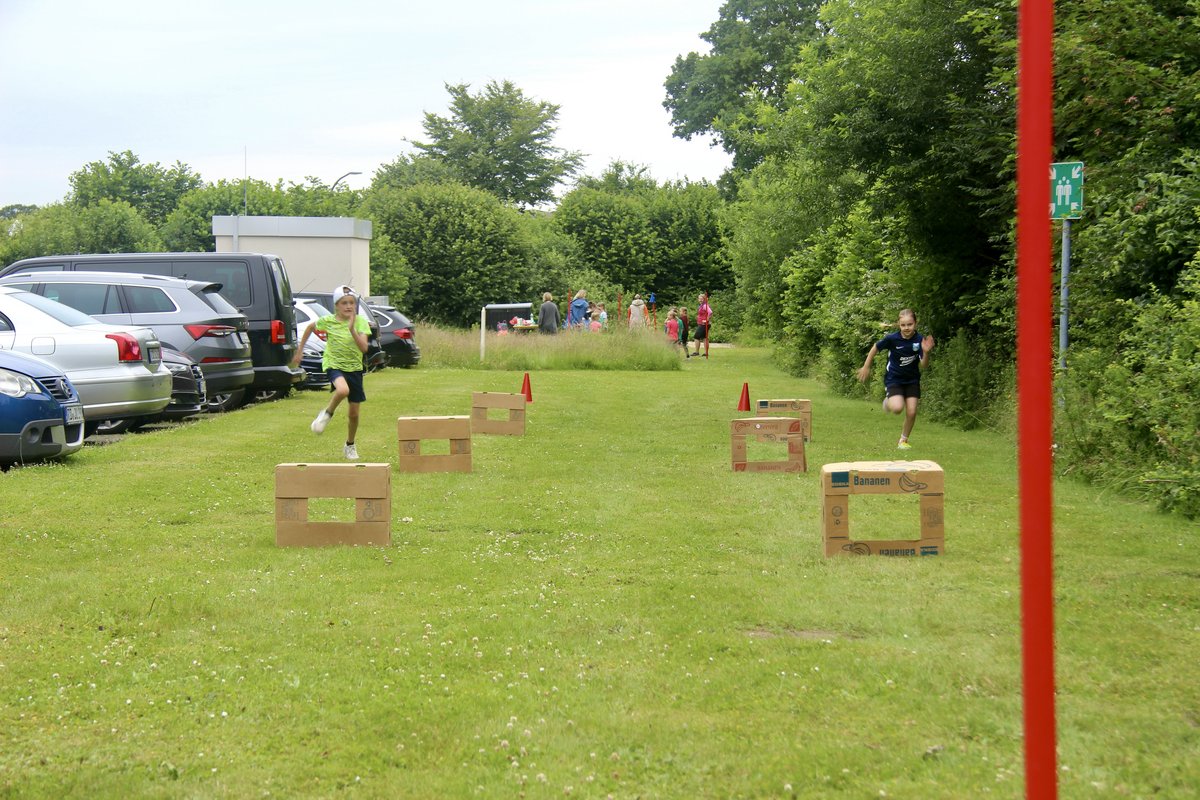 Laufen, springen, werfen - ein Klacks für die Kinder aus Borgstedt und Umgebung! Schon von weiter Entfernung konnte man die anfeuernden Rufe der Teams vernehmen. Nach einem gemeinsamen Abschluss ging es am Ende des Schultags glücklich und erschöpft zurück in die Klassenräume. Viele, viele helfende Hände aus der Eltern- und Großelternschaft haben dem Schulteam an diesem Tag tatkräftig unter die Arme gegriffen und den Kindern diesen tollen Tag ermöglicht. Wir freuen uns schon auf das nächste Jahr!