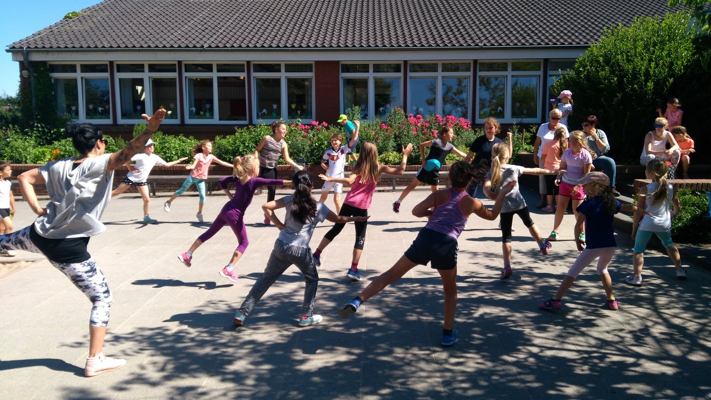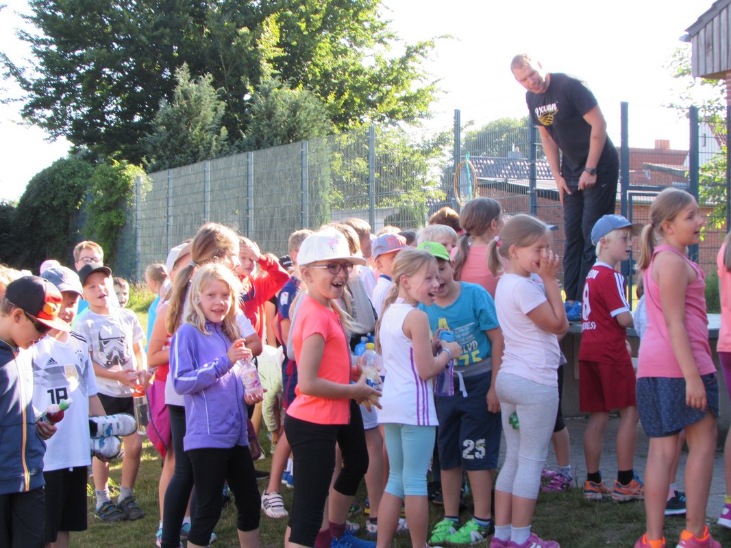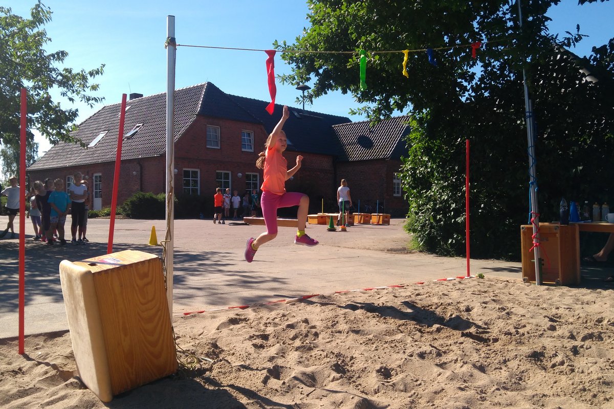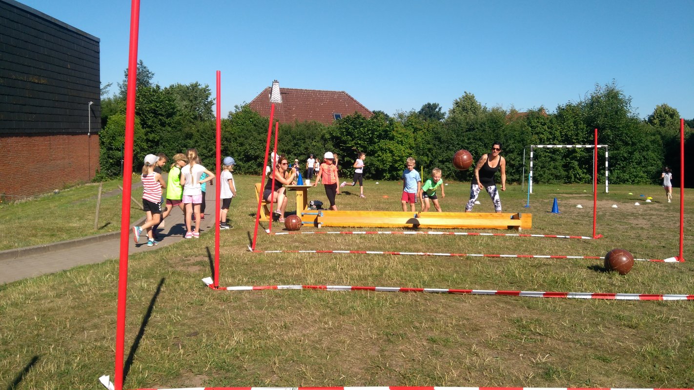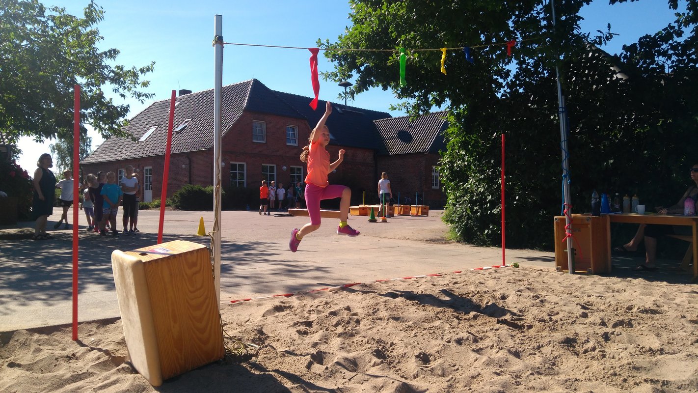 Bei strahlendem Sonnenschein ging es auf unserem Schulgelände im wahrsten Sinne des Wortes heiß her. Unterstützt von musikalischen Klängen sowie von Eltern und Mitschülern gab jeder Einzelne sein Bestes beim Werfen, Springen und Laufen an zehn unterschiedlichen Stationen. Zum Abschluss durften alle ihre Kräfte beim Tauziehen messen und sich für ihre tollen Leistungen bei der Siegerehrung feiern lassen.