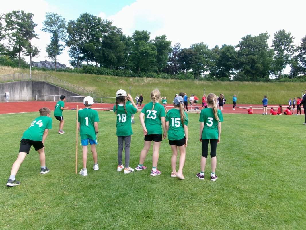 Auch in diesem Jahr fuhr wieder ein Team von 12 Kindern mit dem Bus in die Nachbarschaft nach Büdelsdorf, um sich dort mit 19 weiteren Grundschulmannschaften im wunderschönen Eiderstadion zu messen.