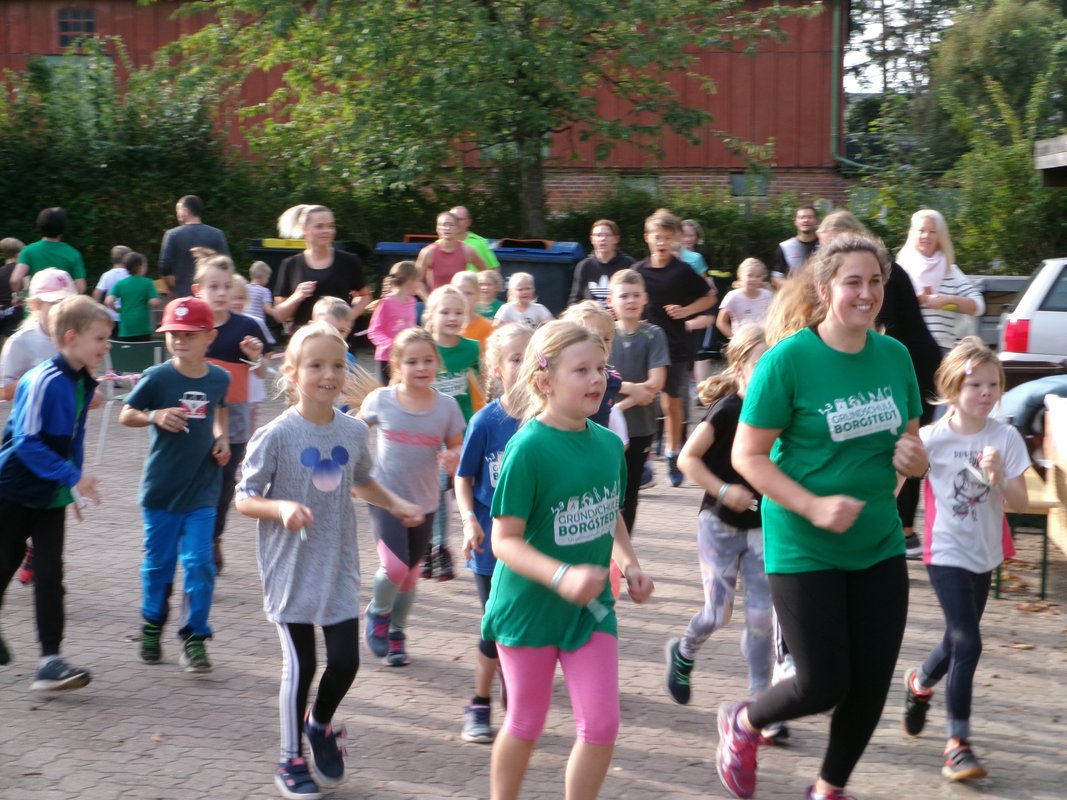 Auch in diesem Schuljahr war die ganze Schule kurz vor den Herbstferien wieder auf den Beinen. Gemeinsam wurden am Lauftag unzählige Runden gedreht und jeder versuchte möglichst lange und wenn möglich sogar 60 Minuten durchzuhalten. Nach dem verregneten Lauftag im letzten Jahr, der uns dazu zwang, in der Turnhalle und im Schulhaus zu laufen, konnten wir den Lauftag diesmal wieder auf dem Schulhof veranstalten. Angefeuert von zahlreichen Eltern, Großeltern und Gästen führte die Runde über den Schulhof, durch den Schulwald, über den Bolzer und sogar durch einen Teil des Schulgebäudes. Dieses Spektakel ließen sich auch einige Eltern und ehemalige Schülerinnen und Schüler nicht entgehen und reihten sich bei den Läufern mit ein. In diesem Jahr liefen die Kinder aber nicht nur gegen die Zeit, sondern auch für eine gute Sache. Im Kinderparlament wurde entschieden, dass am Lauftag Spenden für die Eichhörnchen-Schutzstation in Eckernförde gesammelt werden sollen. Im Vorfeld suchten die Kinder also Sponsoren, die sie bei ihrem sozialen Engagement unterstützten. Bei so vielen motivierten Läufern sind bestimmt jede Menge Spenden zusammengekommen. Nach den Ferien wissen wir genau, über wie viele Spenden sich die Eichhörnchen freuen können und werden diese dann auch feierlich mit den Kindern überreichen. Vielen Dank an alle Läufer und alle, die diesen Lauftag wieder zu einem tollen unvergesslichen Ereignis gemacht haben!