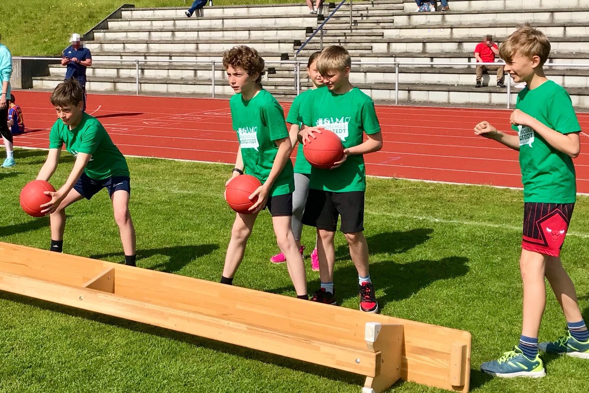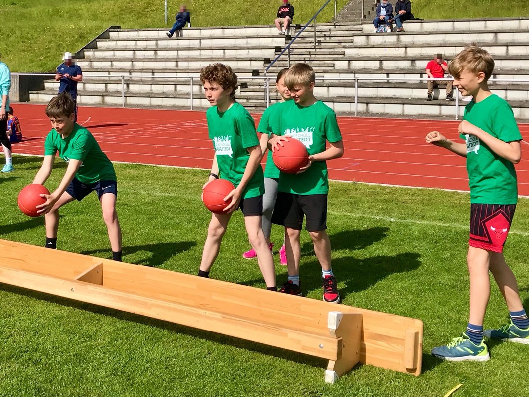 Motiviert wurden die Bananenkartons überflogen, der Schlagball bis nach Borgstedt geschickt, der Medizinball mit viel Schwarzbrotpower nach vorn gewuchtet und beim Weitsprung über die Sandgrube hinweggeflogen. Beim abschließenden Ausdauerlauf gaben die Kinder nochmal alles: Voller Energie wurde Strecke um Strecke zurückgelegt.
