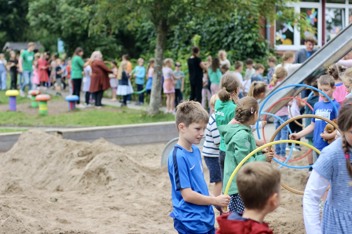 Der letzte Schultag war wie jedes Jahr ein ganz besonderer: Nach der Zeugnisvergabe für alle Klassen wurde auf dem Schulhof ein buntes Reifenspalier gebildet, durch das unsere Viertklässler feierlich hindurchzogen – begleitet von Applaus, Musik und vielen lachenden Gesichtern. Im Anschluss versammelten sich alle Kinder zur gemeinsamen Verabschiedung in der Aula.