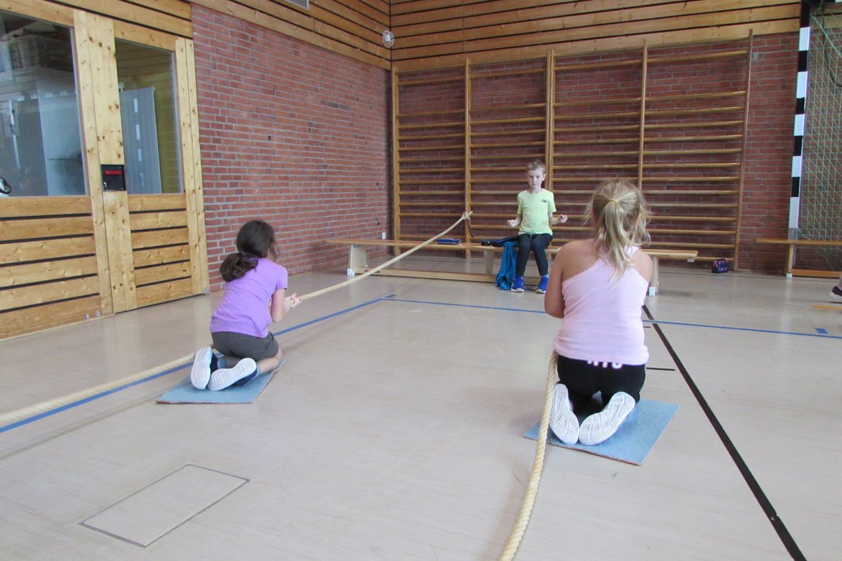 Wackelpudding sucht man in der Grundschule Borgstedt vergeblich. Hier findet man nur Muckiberge und davon reichlich. Das haben die Schüler bei unserem alljährlich stattfindenden Muckitest wieder unter Beweis gestellt. Die Turnhalle wurde zur Muckibude und alle Kinder haben nicht nur Kraft, Schnelligkeit und Koordination bewiesen, sondern auch Geschicklichkeit. So viel Einsatz beim Käfer, beim Hindernisparcour oder beim Tauziehen wurden natürlich mit einer Urkunde und etwas Muskelkater belohnt.