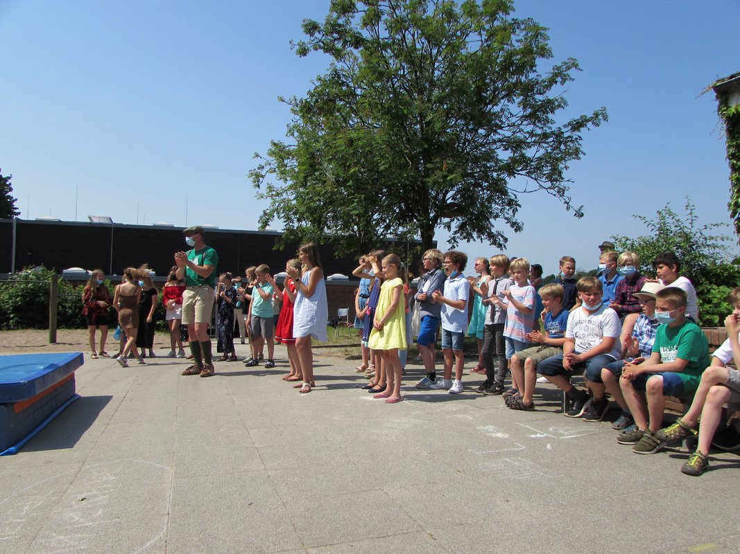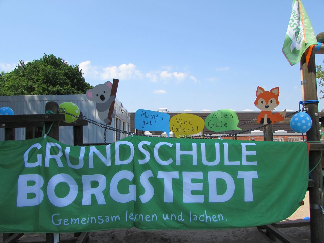 Da war er, der letzte Tag in der Grundschule Borgstedt für die Füchse und die Koalas. Nun hieß es Abschied nehmen. Den Anfang machten alle Kinder unserer Grundschule. Sie versammelten sich auf dem Schulhof und wünschten den Füchsen und Koalas lautstark alles Gute für ihre Zukunft. Später versammelten sich Eltern und das Kollegium in der Turnhalle, um die Kinder ebenfalls gebührend zu verabschieden. Das Kollegium führte ein durch die Füchse und Koalas inspiriertes Theaterstück auf, es wurden bewegende Reden gehalten und ein wunderschönes Abschiedsvideo gezeigt. Zum Schluss stand auf dem Schulhof unter großem Applaus der letzte Gang über das Klettergerüst an. Mit dem Raussprung wurde das Ende der unvergesslichen Grundschulzeit und der Beginn einer wunderschönen Zeit an den weiterführenden Schulen symbolisch besiegelt.